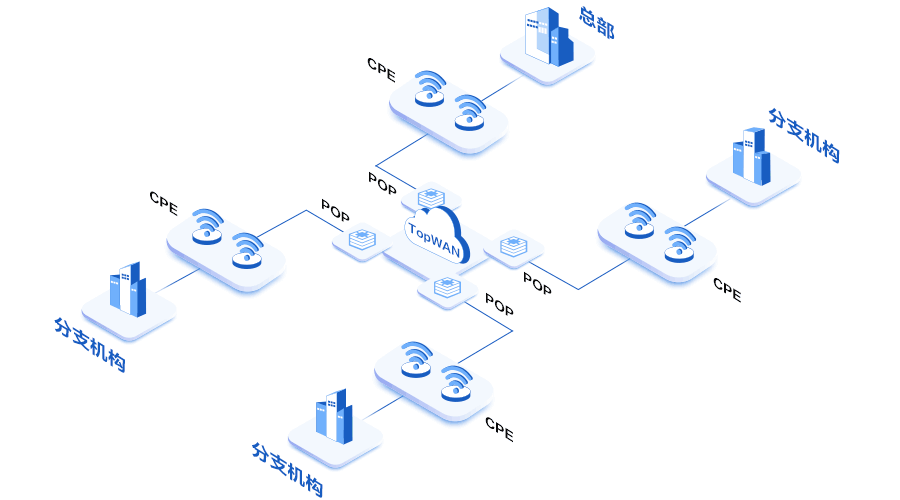 为帮助客户解决上述问题,科华数据向客户提供基于SD-WAN技术的TopWAN组网解决方案。该组网方案旨在为客户提供更便捷、更灵活、更安全,且成本可控的传输优化服务,对客户现有网络架构不做任何调整,终端设备即插即用,支持互联网、专线、5G等多种接入方式,完美的解决客户最后一公里的问题。我们利用先进的技术和优质的网络资源,为客户构建可以媲美专线的高质量、高冗余混合骨干网络。同时,对“接入网络”+“骨干网络”可进行统一管控,实现了端到端的全链路优化,并通过可视化监控界面,对所有链路使用情况的实时监控,具备完善的告警机制,保障出现故障时可以及时发现、响应、定位和快速解决问题。